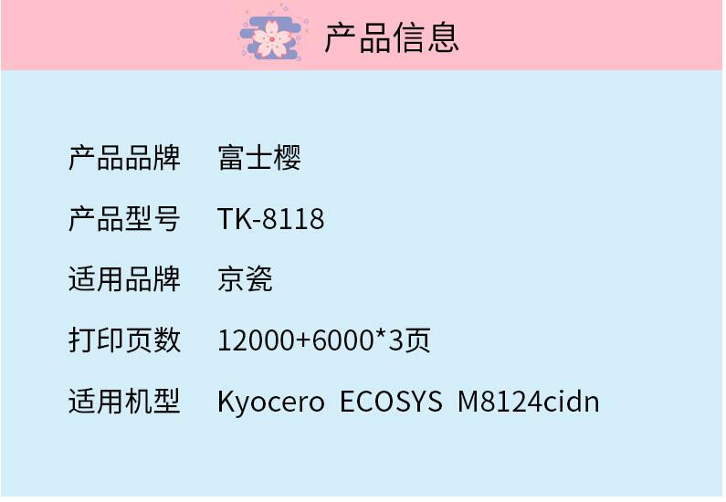 TK1881 FC-tk8118通用耗材易加粉碳粉粉盒墨粉盒硒鼓富士櫻適用京瓷Kyocera M8124cidn打印機(jī)黑色黃色洋紅色青色